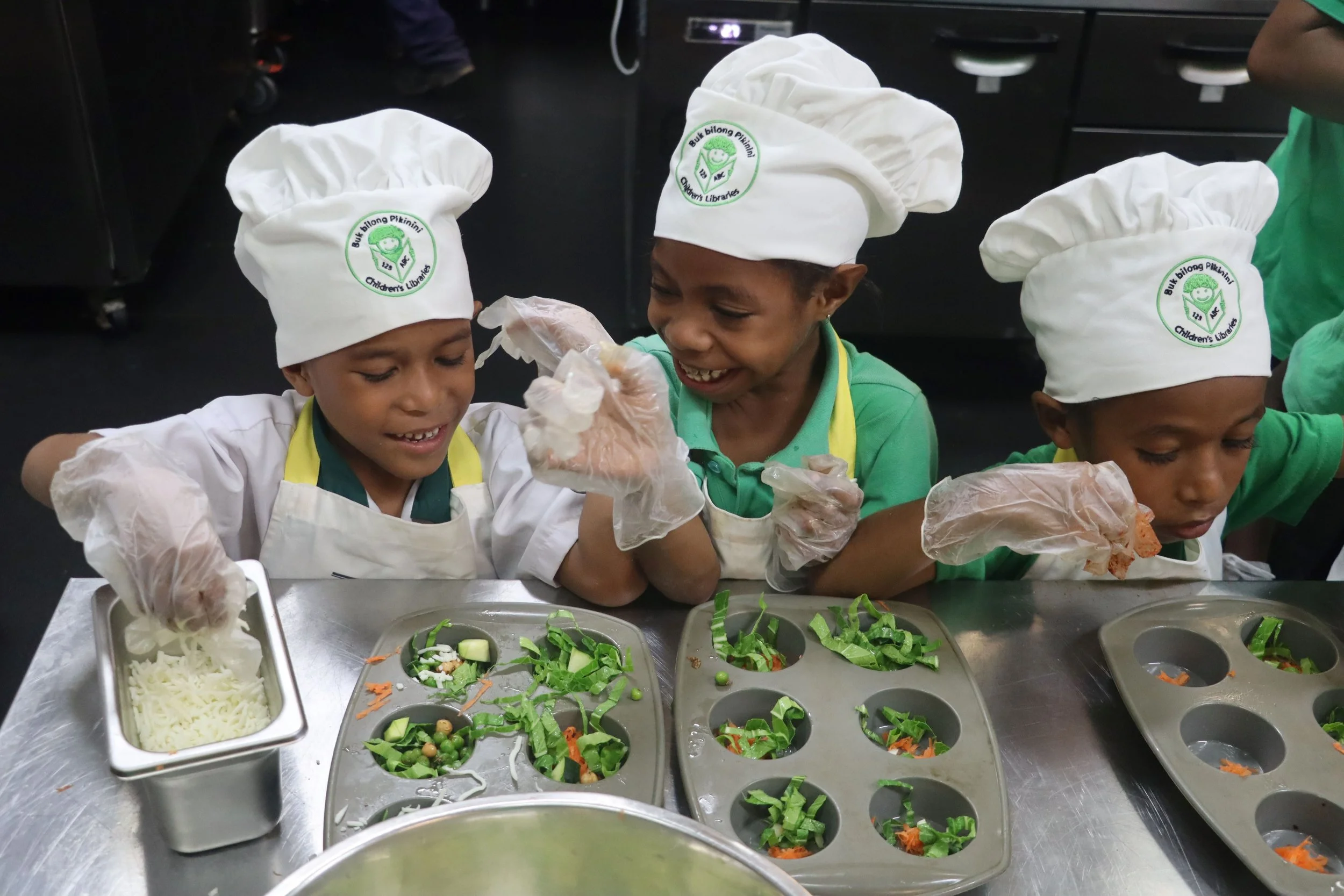 Billy, along with 20 other students from BbP’s UPNG Library Learning Centre, spent the morning in The Locker Room kitchen role-playing mini chefs. Under Chef Julz’s and his team’s guidance, they learned to prepare yummy, healthy dishes and gained hands-on experience in the dynamic, demanding, and rewarding world of professional cooking.
