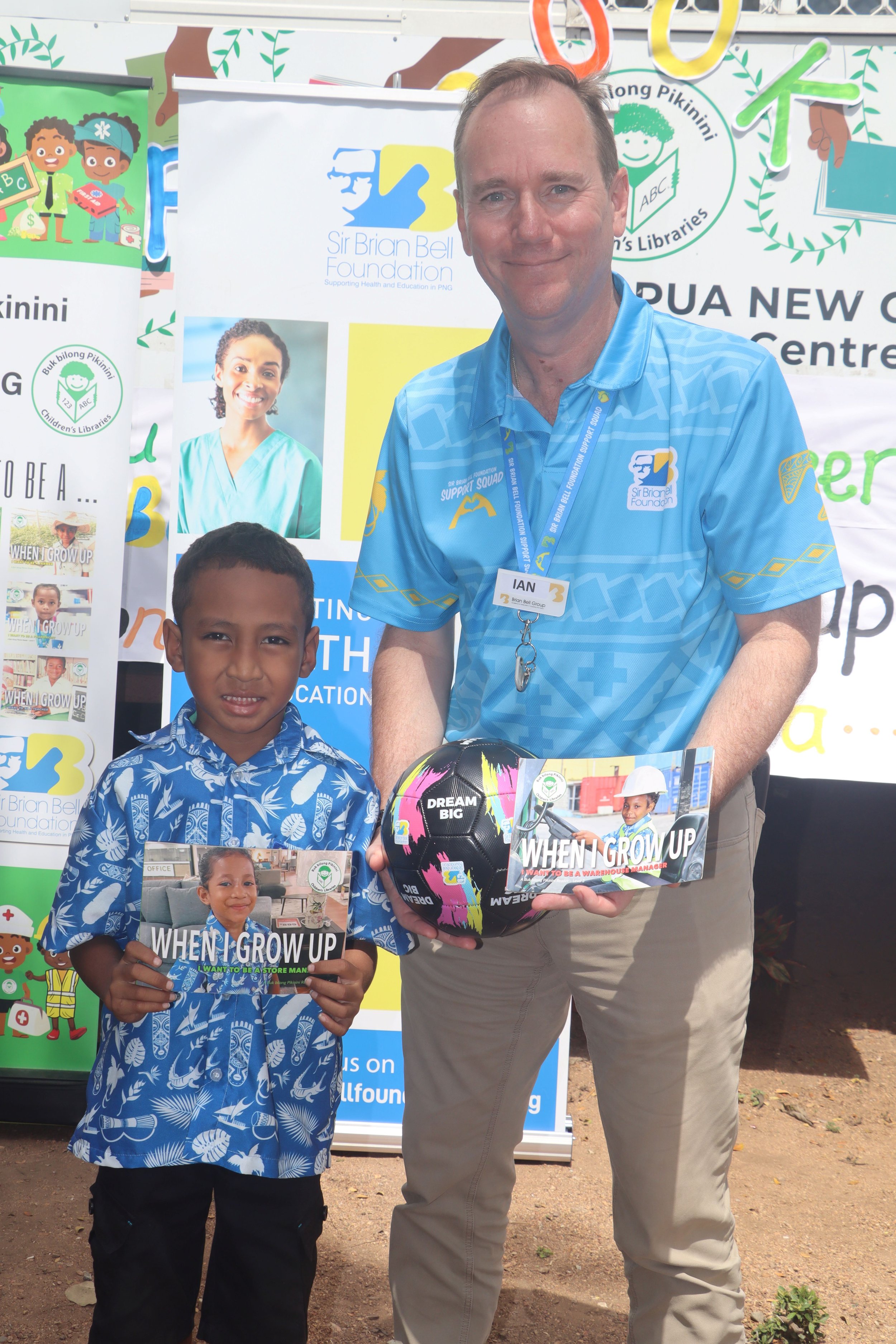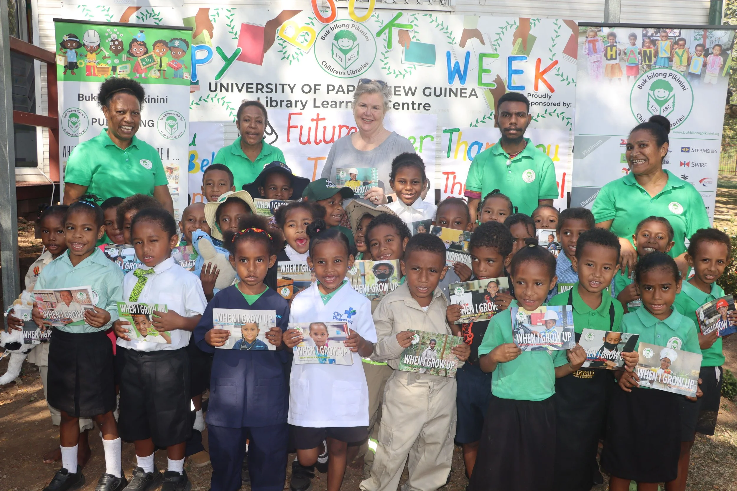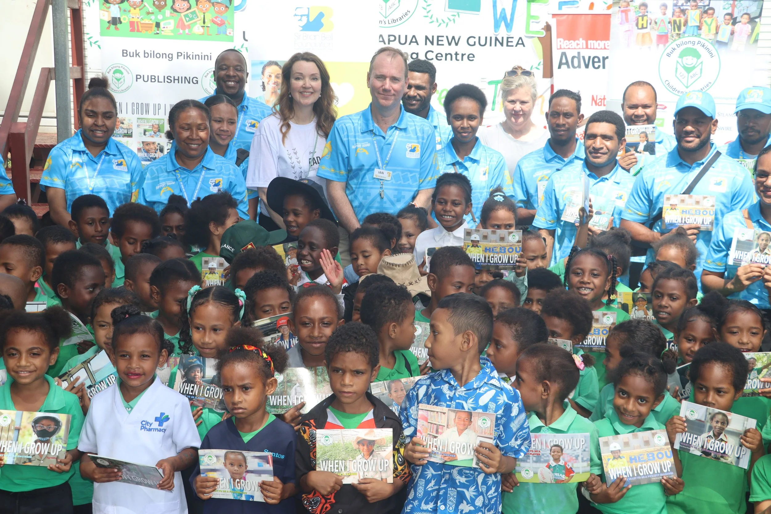 BbP was also grateful to have Mr Ian Clough, CEO of the Brian Bell Group, who are Platinum Sponsors of Buk bilong Pikinini, attend the event and take photos with the students and team — a gesture that further highlights the strong commitment of our partners to supporting children’s education. The Sir Brian Bell Foundation (SBBF) has sponsored the printing and shipping of the When I Grow Up reader series.