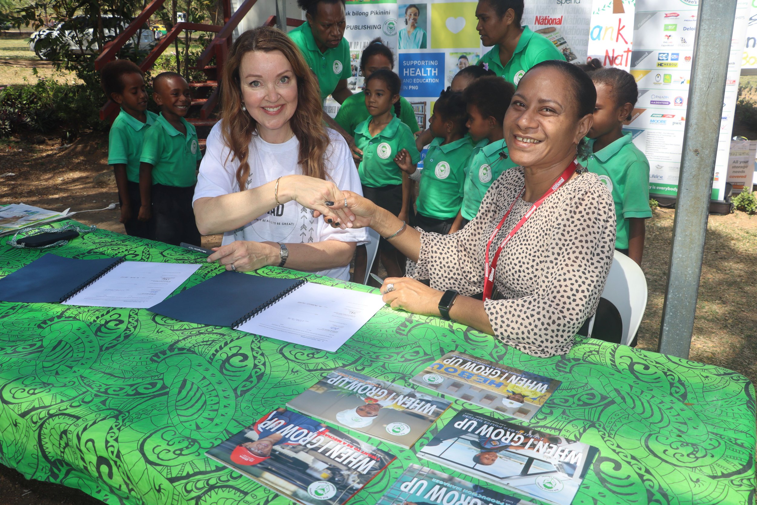 Port Moresby: Buk bilong Pikinini (BbP) is proud to announce the signing of its first media partnership with The National, Papua New Guinea’s leading daily newspaper. The agreement was formalised during the week-long celebrations of Book Week 2025 and was signed by Anne-Sophie Hermann, BbP Founder and Vice Chair, and Dorcas Aup, Advertising Manager for The National.