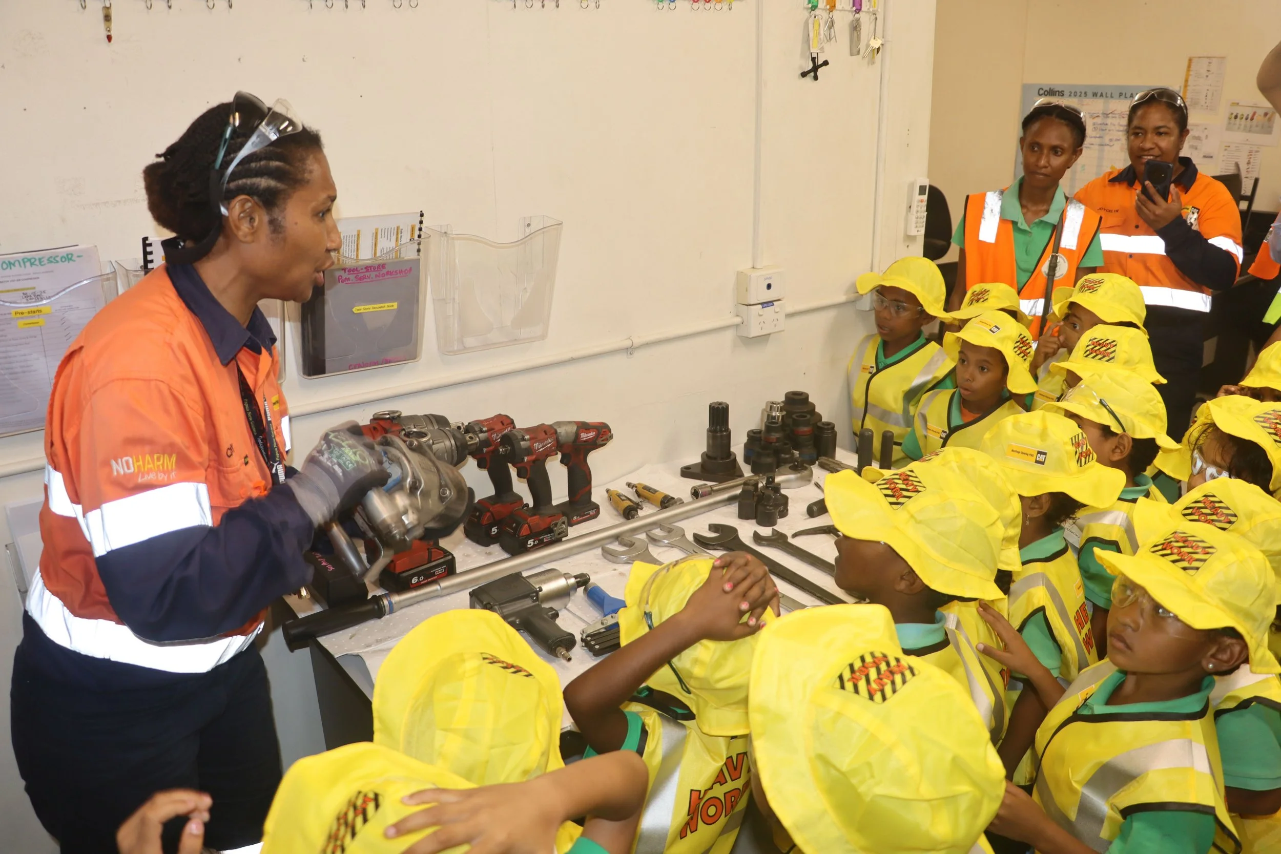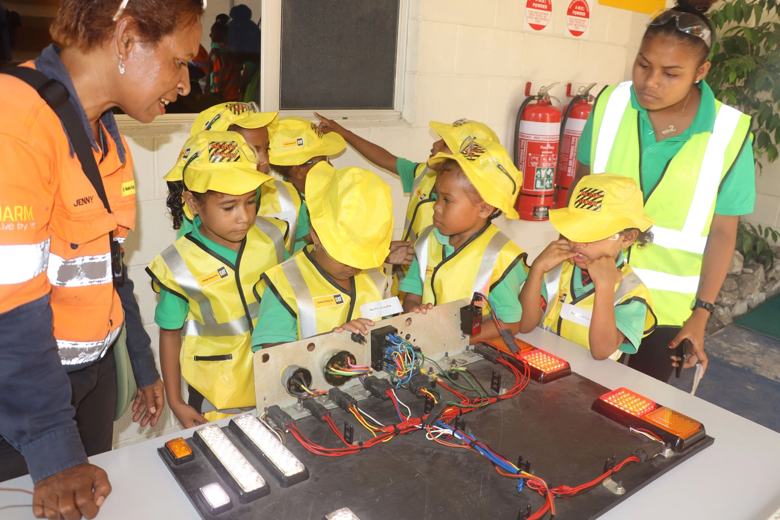 Welcomed by Hastings Deering, Pacific Islands Executive Manager, Mr. John Hendry, and the Hasting Deering team, the children were kitted out with safety vests, work belts, and hats before setting off on their tour.