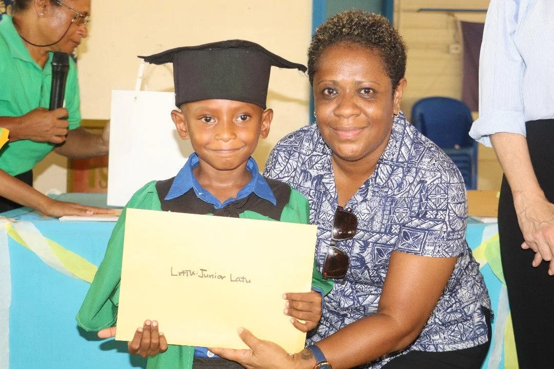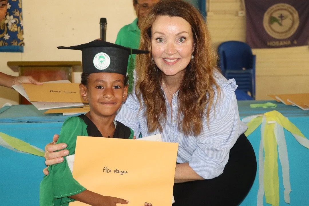 BbP’s Executive Officer, Ms Leanne Resson, also attended and was proud to witness the students graduating. She, together with Ms Deborah Alois, Ms Anne-Sophie Hermann, and Reverend Momoru Hedu, were honoured to present the graduation certificates to the young learners.