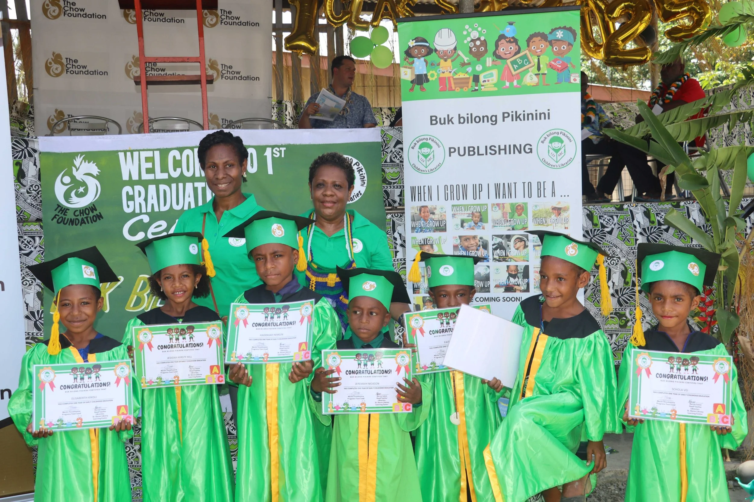 Buk bilong Pikinini extends its gratitude to the Australian Government, the Direct Aid Program, Mr Brenton Kanowski, the Chow Foundation, Mr John Chow, Lae Biscuit Company, St Steven Parish and parish priest Father Christubabu Chamallamudi, teachers, parents, and community partners for their continued commitment to strengthening early learning outcomes in Lae.